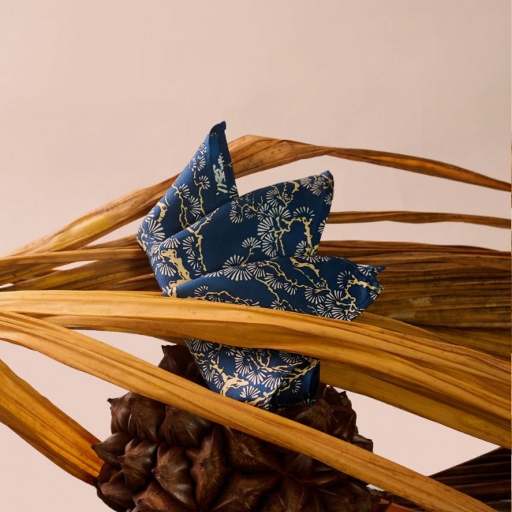 Khăn lụa vuông pocket square -PEARLWOOD INDIGO 45*45cm
