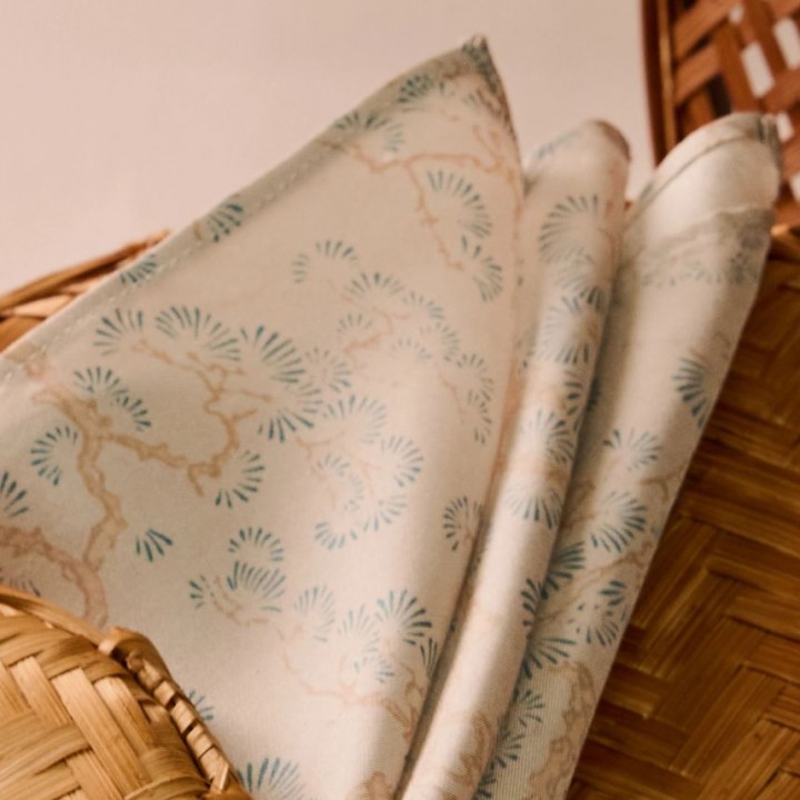 Vải lụa của chúng tôi được sản xuất tại địa phương trong điều kiện thuận lợi tại Việt Nam bởi các nghệ nhân lành nghề. Các mẫu toàn bộ được in bằng tay.