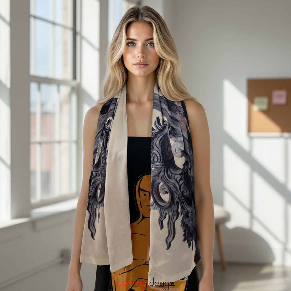Khăn digital HNSS20.01 đen và trắng ( 2 mặt )