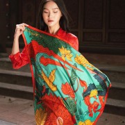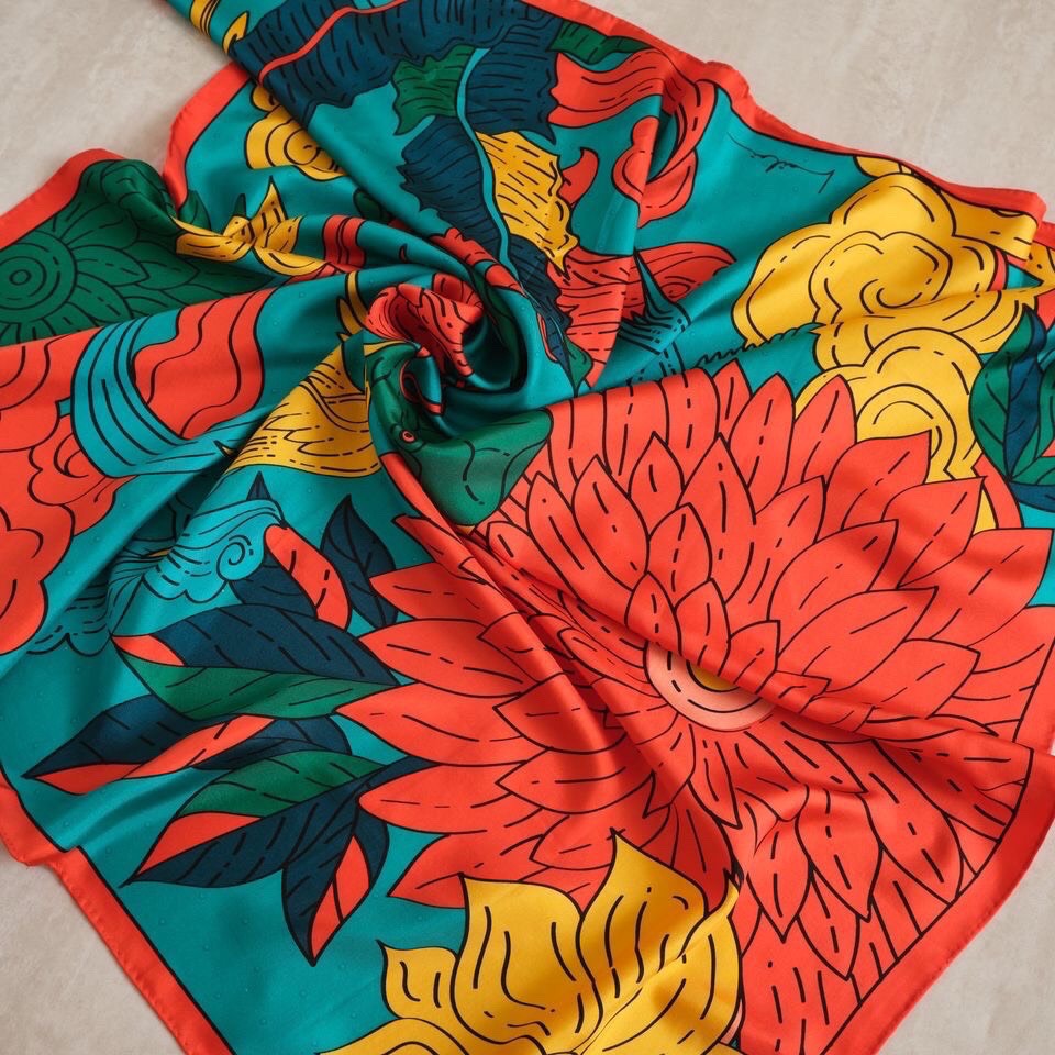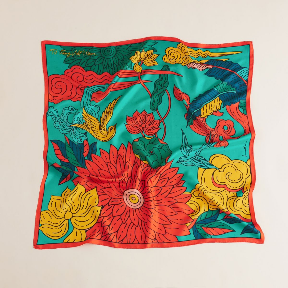 Khăn lụa vuông Hạnh phúc họa tiết thiết kế hoa lá và chim
