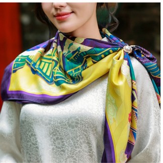 Khăn lụa vuông Hương Vân Long Mộng đỏ 90x90cm