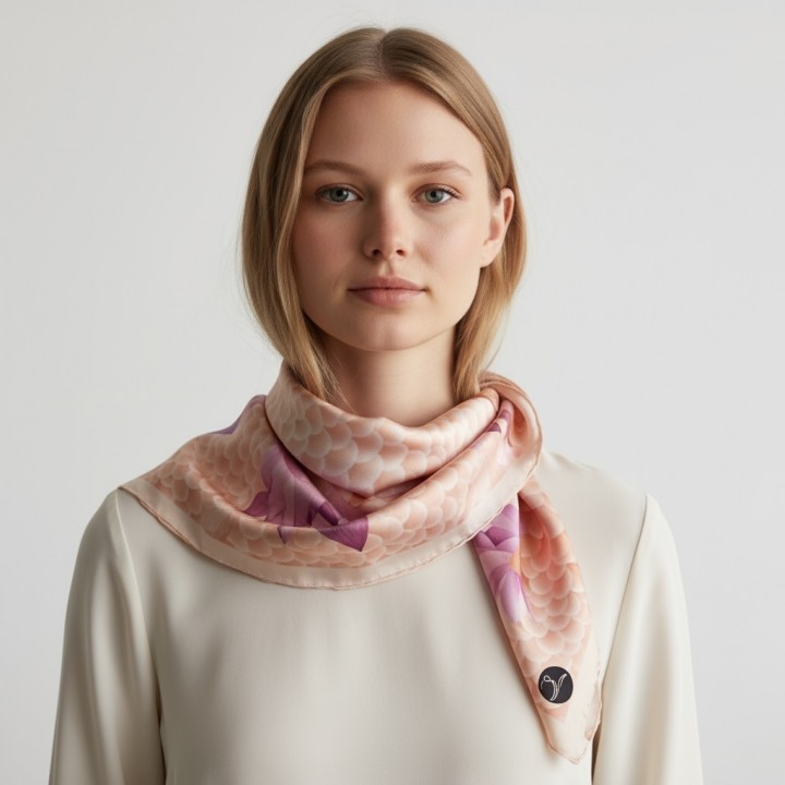 Khăn lụa vuông Kỳ lân hồng 100*100 cm