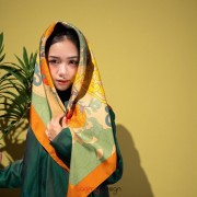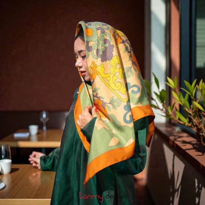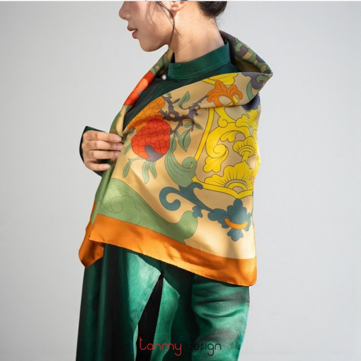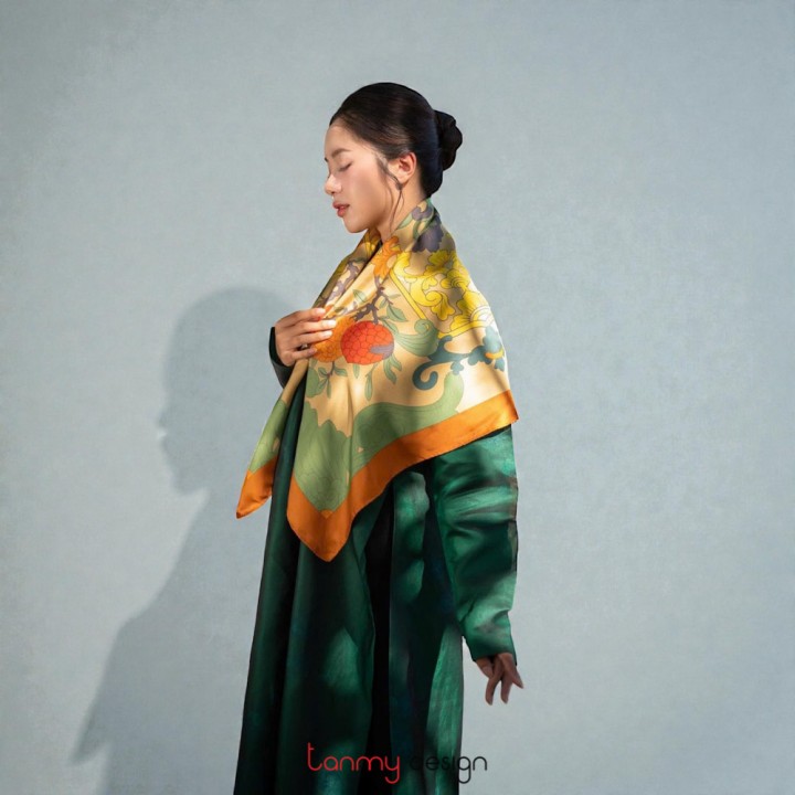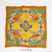 Khăn lụa vuông mãn cầu khởi phúc - viền cam 90x90 cm