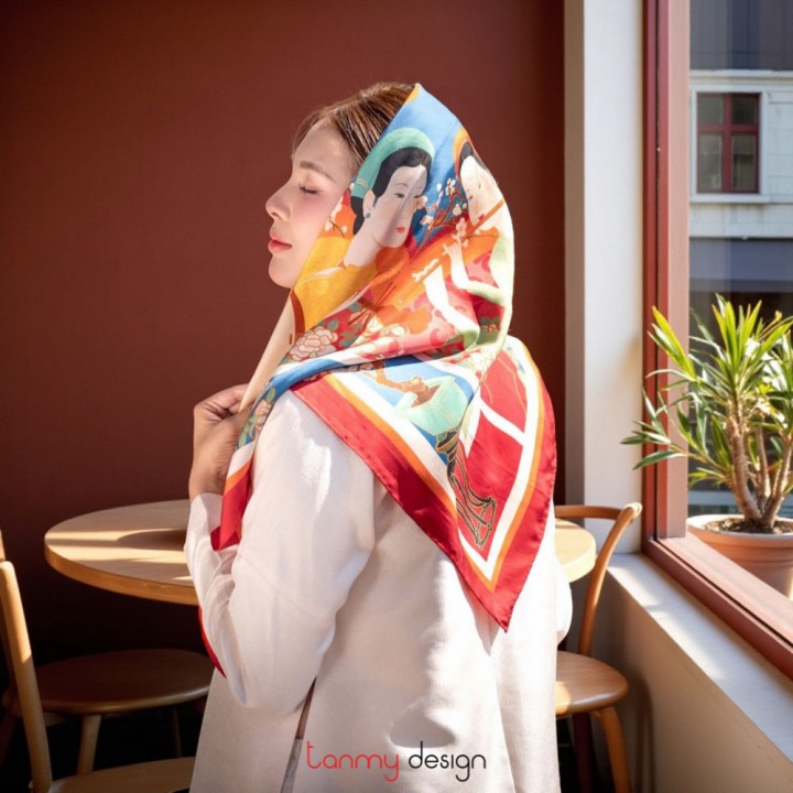 Khăn lụa vuông ngọc nữ cầm tâm - 90x90 cm