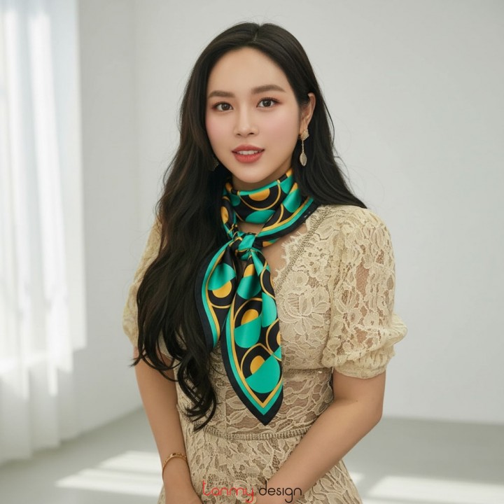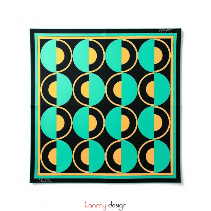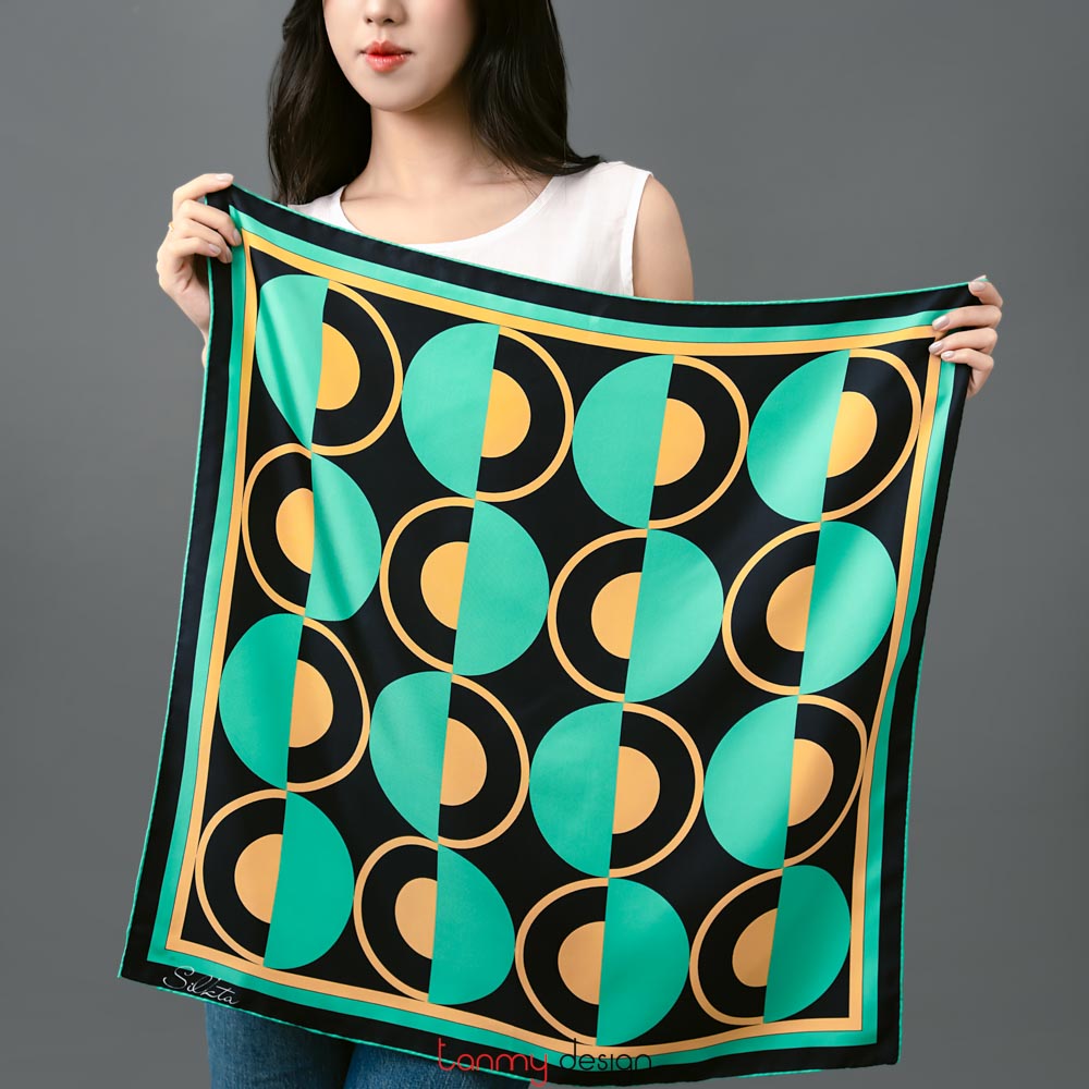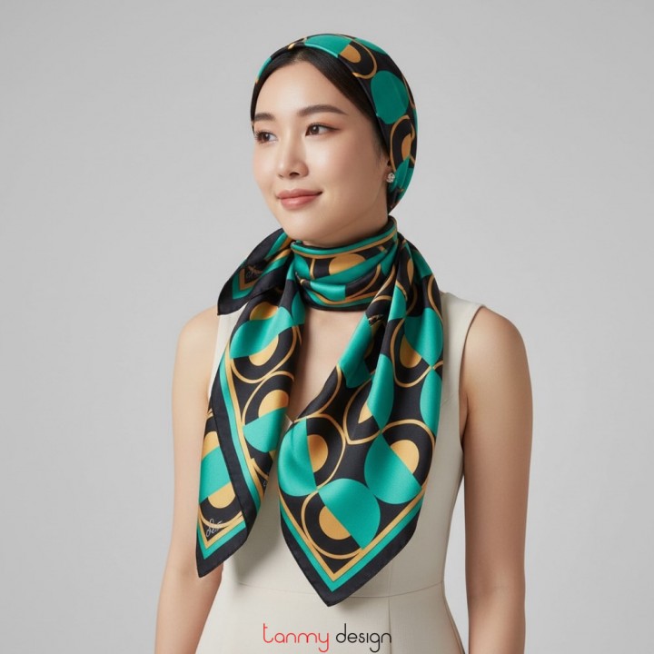Khăn lụa vuông Nhịp điệu thời gian Green Black 70x70