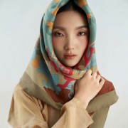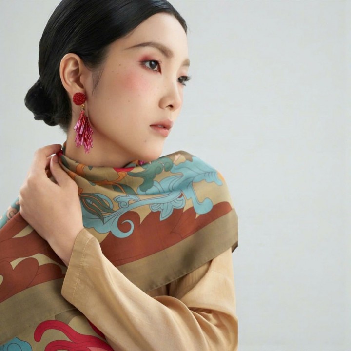 Khăn lụa vuông phật thủ tường an - viền rêu 90x90 cm