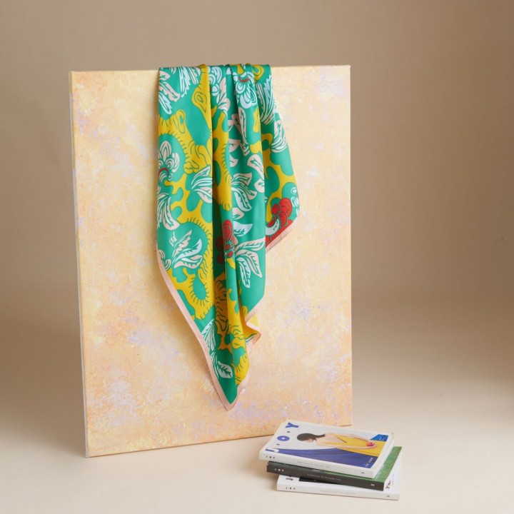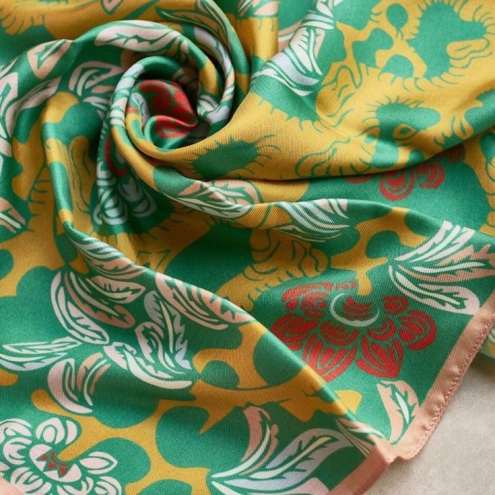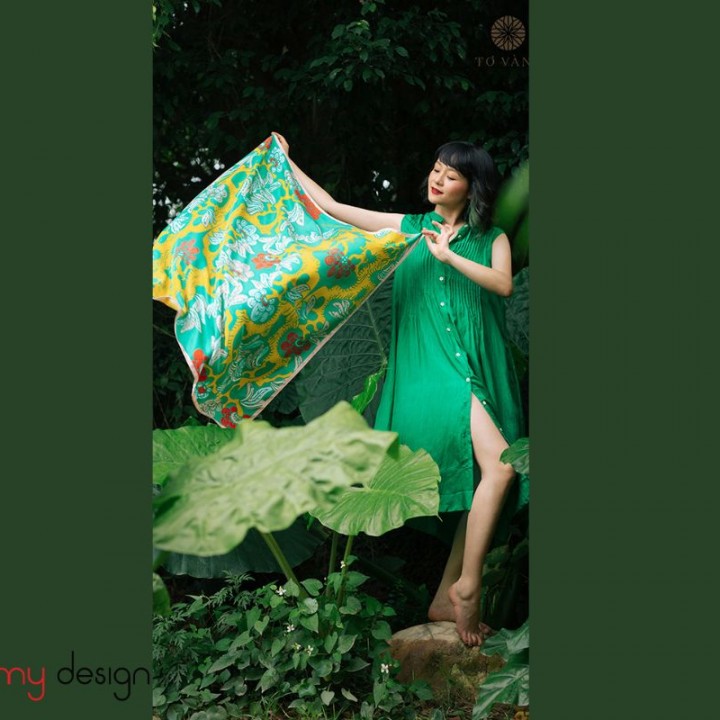 Khăn lụa vuông thiết kế họa tiết Vườn thanh xuân