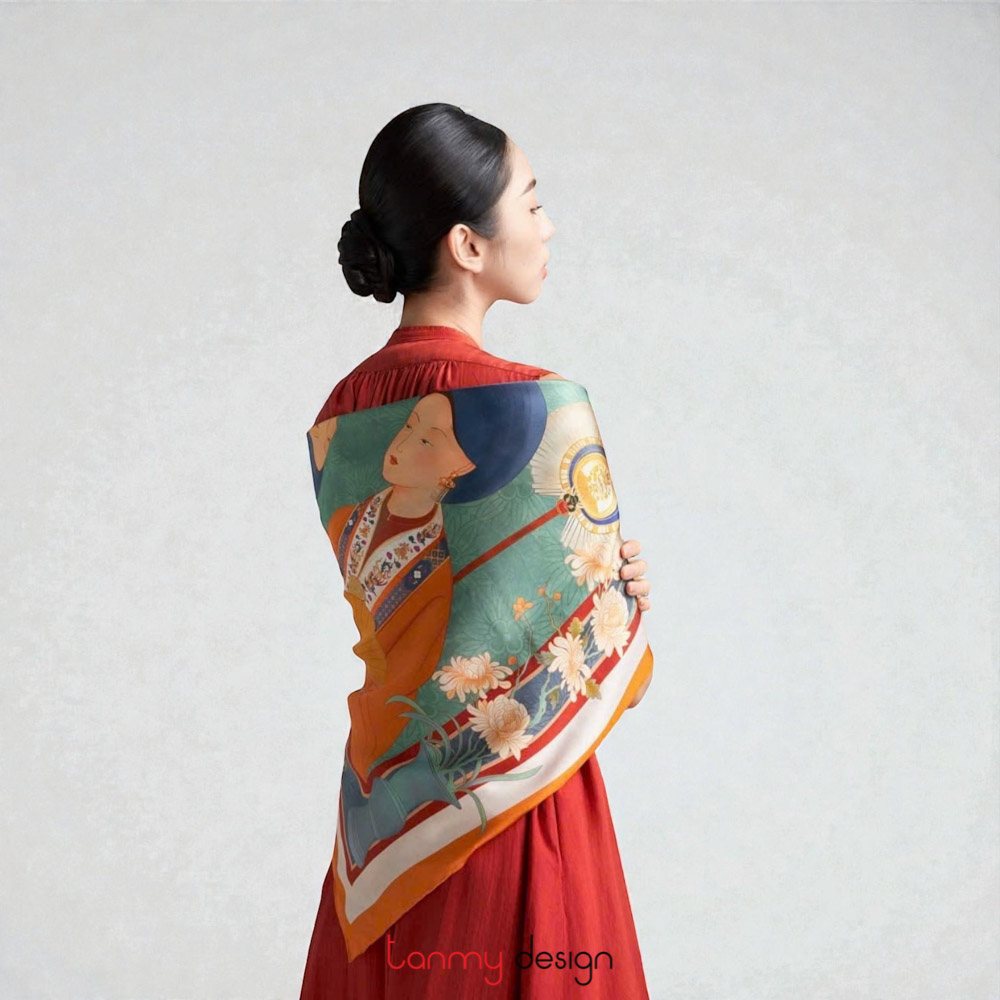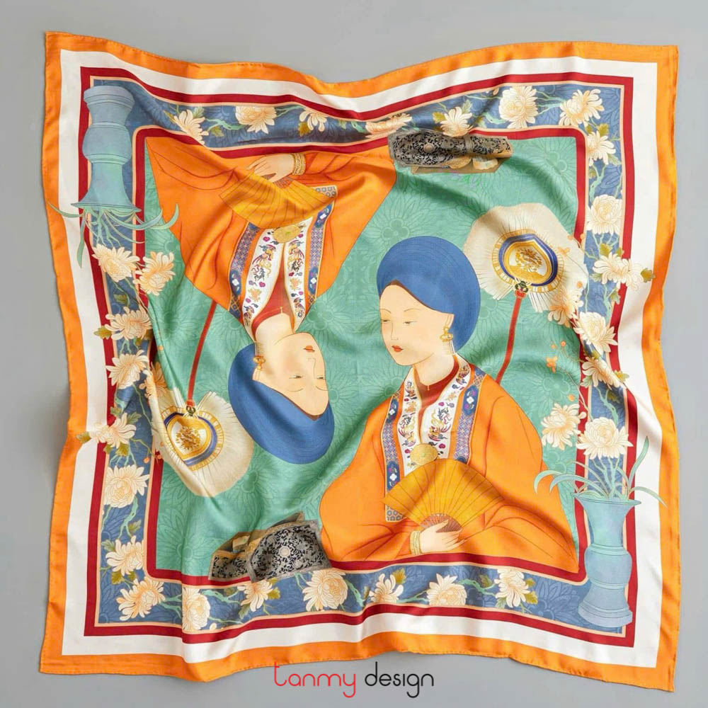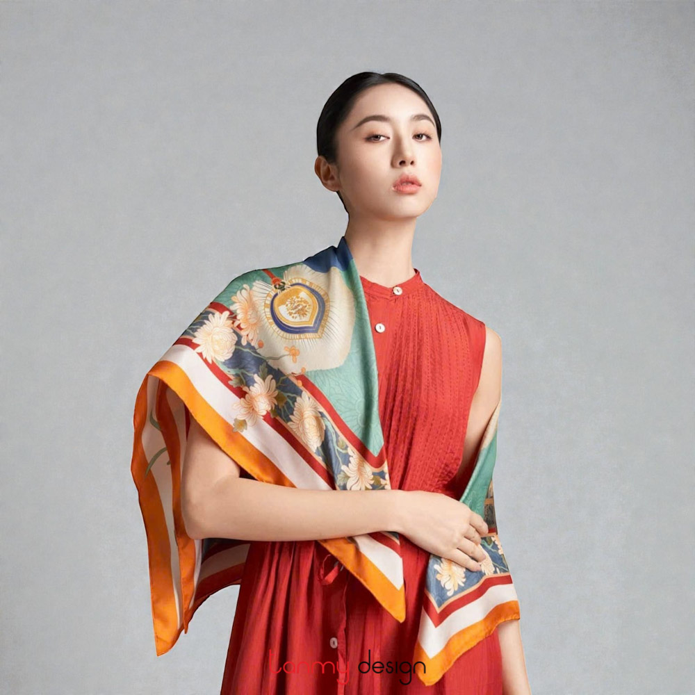 Khăn lụa vuông trầm bích song khuê - 90x90 cm