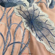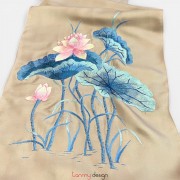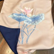 Khăn lụa 2 mặt be xanh navy thêu hoa sen hồng 40*200 cm