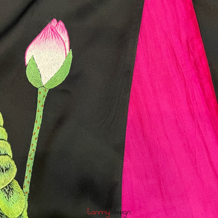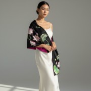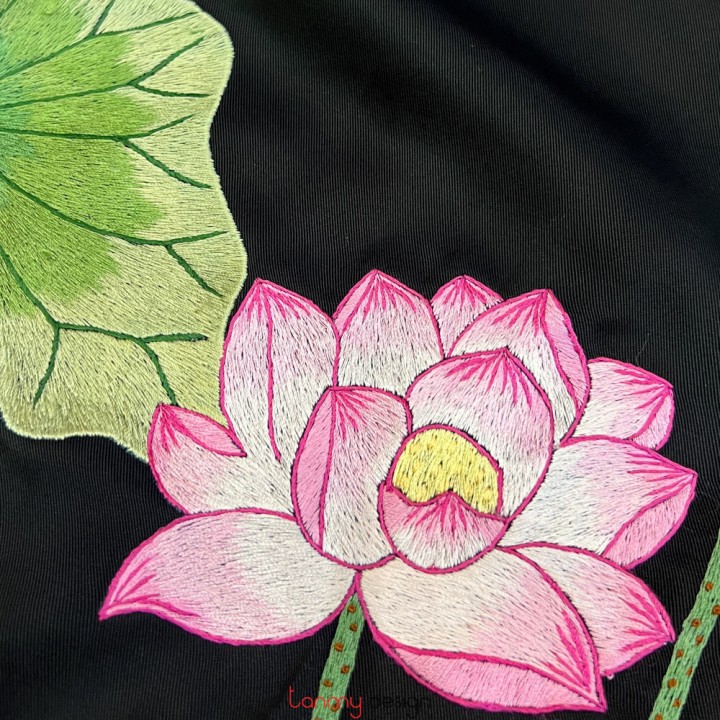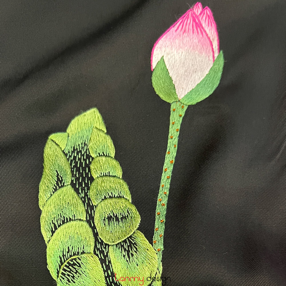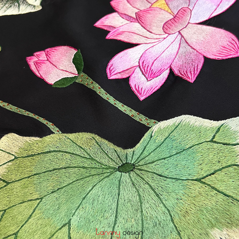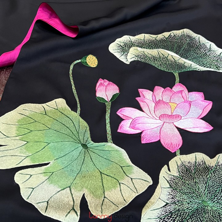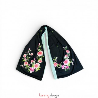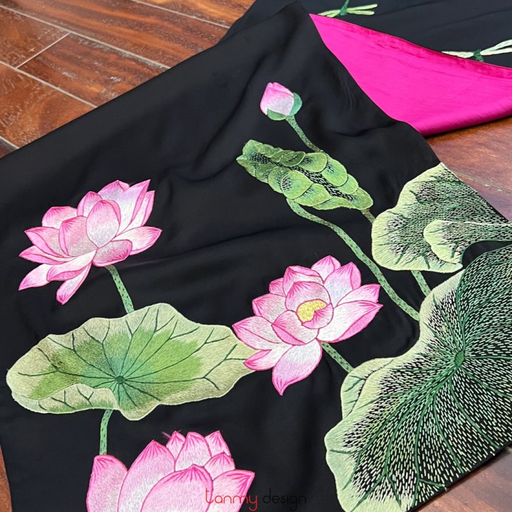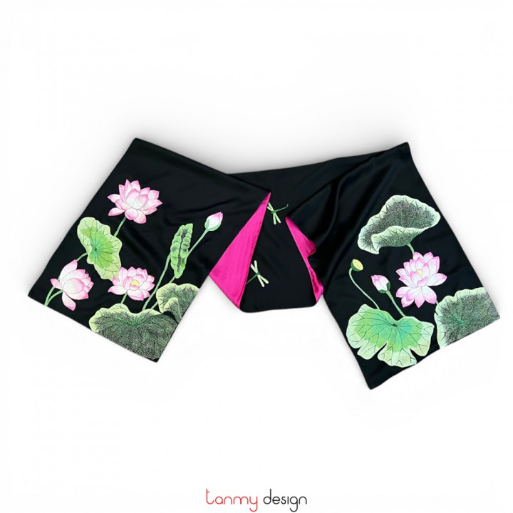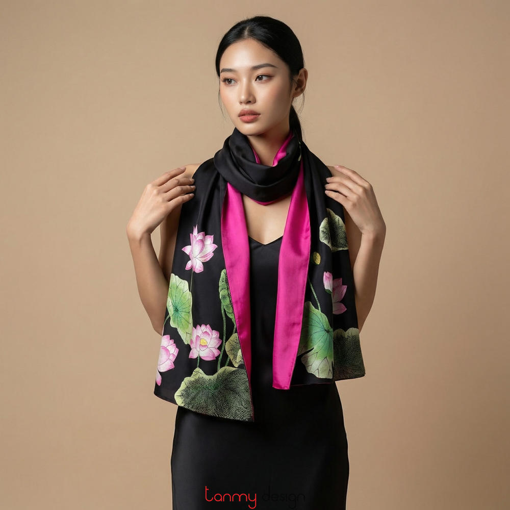 Khăn lụa 2 mặt đen thêu hoa sen 40*200 cm- Các mẫu