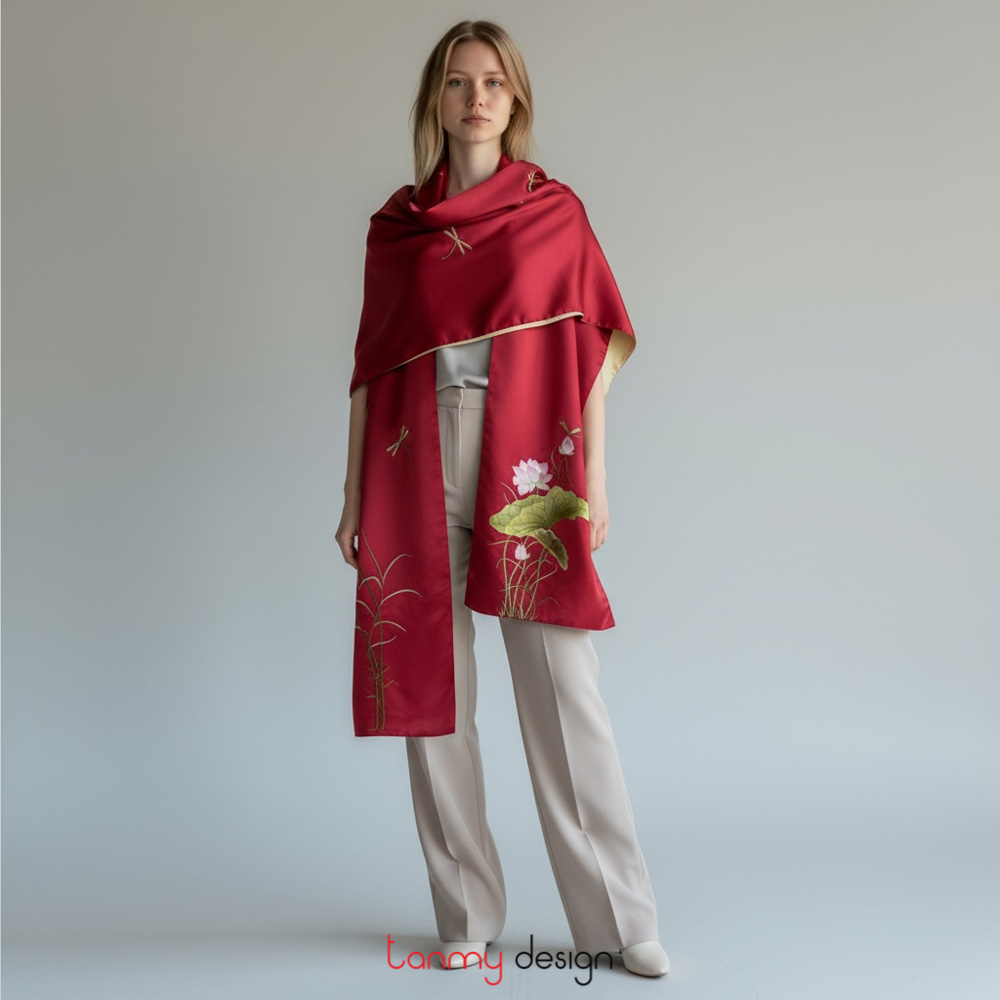 Khăn lụa 2 mặt đỏ thêu hoa sen 40*200 cm- Các mẫu