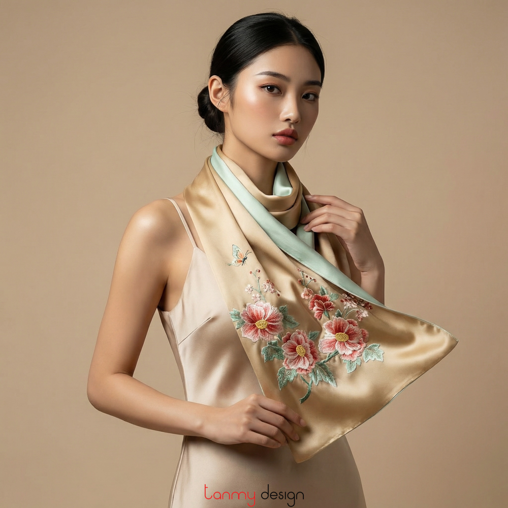 Hiện nay, shop bán khăn lụa tơ tằm cao cấp, khăn lụa tơ tằm thêu tay cao cấp nhất tại Việt Nam chỉ có ở Tân Mỹ Design - địa chỉ bán khăn lụa cao cấp Hà Nội