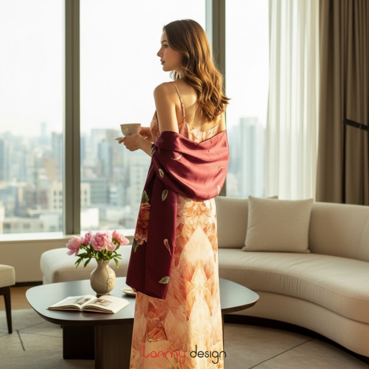 Khăn lụa là phụ kiện giúp bộ trang phục của phụ nữ thêm tươi mát trong mùa hạ và ấm áp khi đông về, nhờ vào đặc tính tuyệt vời của lụa. Hơn nữa, các hoạ tiết thêu tay tinh xảo lại góp phần tôn lên gu thời trang sang trọng và thể hiện cá tính của phụ nữ theo từng cách biến tấu với khăn lụa và bộ trang phục.