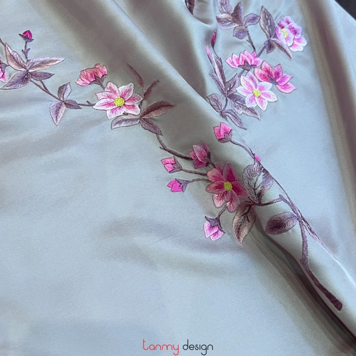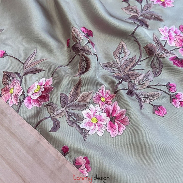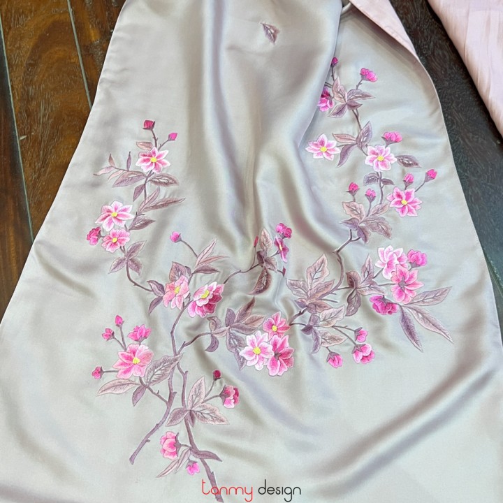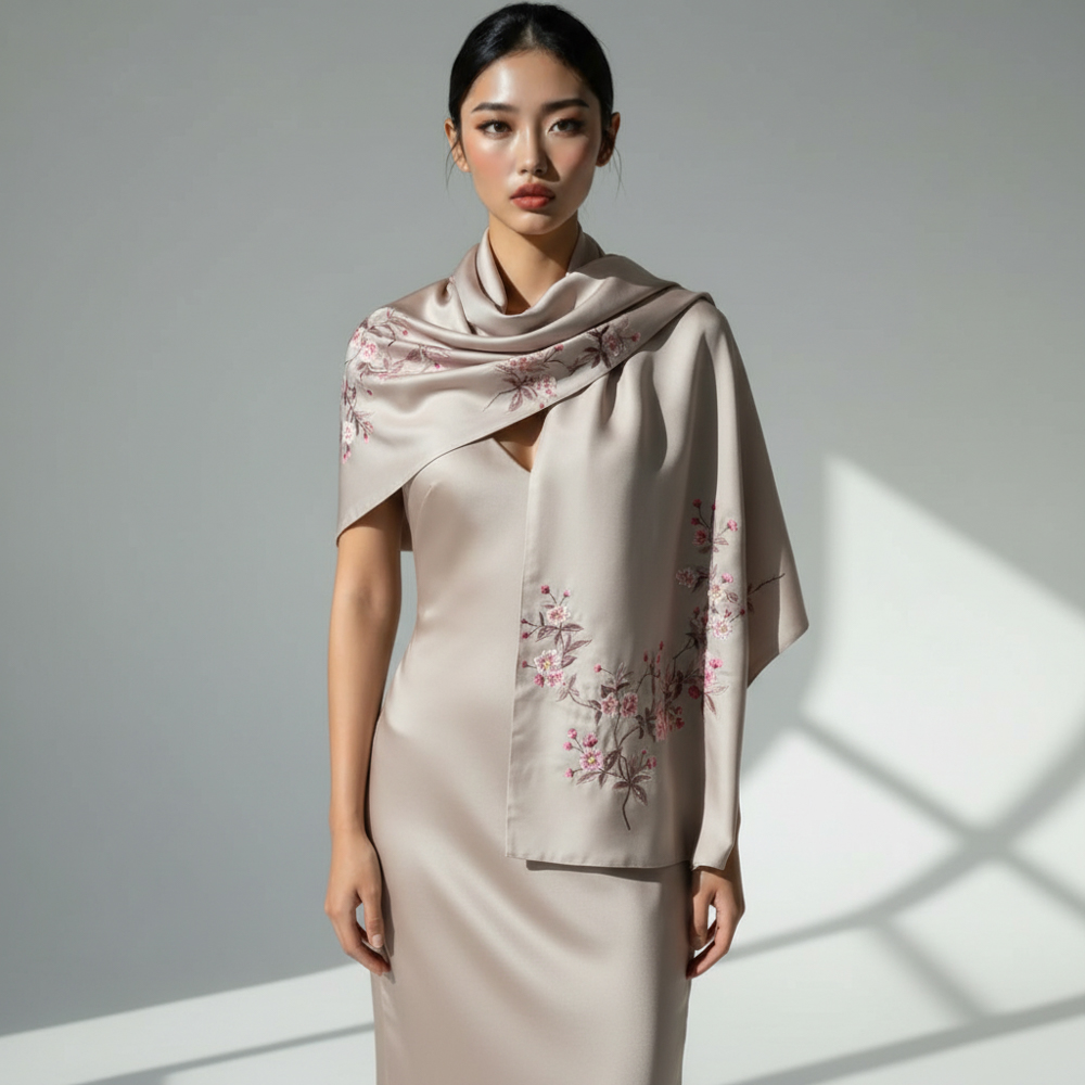 Khăn lụa 2 mặt thêu hoa anh đào 55*200 cm