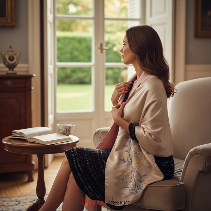 Khăn lụa 2 mặt thêu hoa các mẫu 40*200 cm