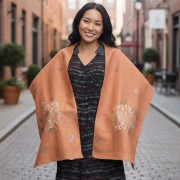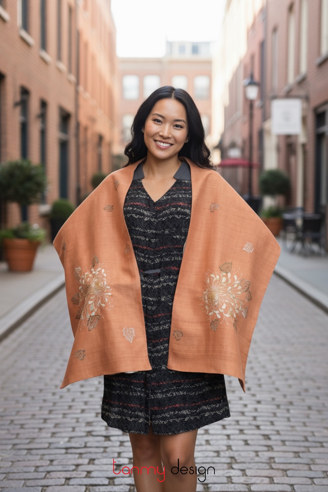 Khăn lụa 2 mặt thêu hoa và lá 40*200 cm- Mẫu 1