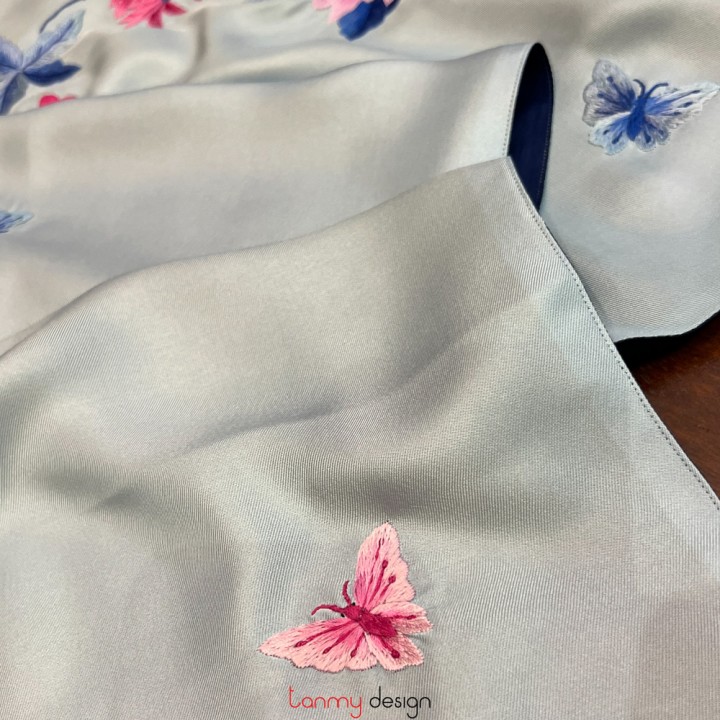 Khăn lụa 2 mặt thêu hoa và lá 40*200 cm- Mẫu 8