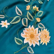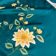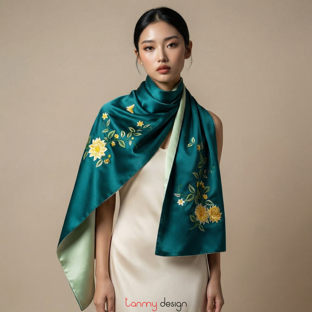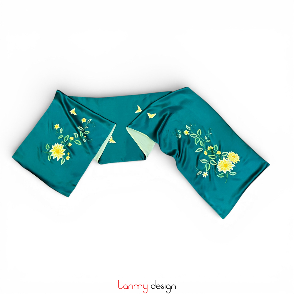 Khăn lụa 2 mặt xanh thêu hoa cúc vàng 40*200 cm