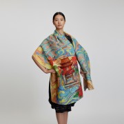Khăn gai dài vẽ tay hình thuỷ ấn và Khuê Văn Các 70*190cm