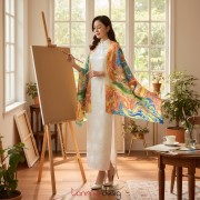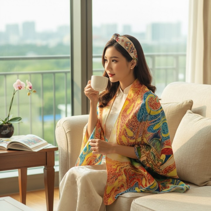 Khăn gai dài vẽ tay hình thủy ấn và Thánh đường 70*190cm