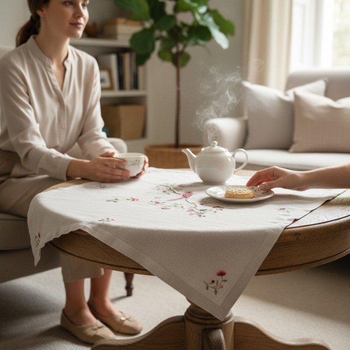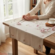 Khăn trải bàn vuông 90 lanh thêu chim phượng