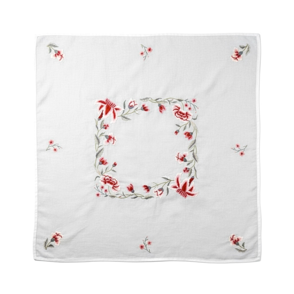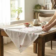 Khăn trải bàn vuông 90 lanh thêu hoa trà