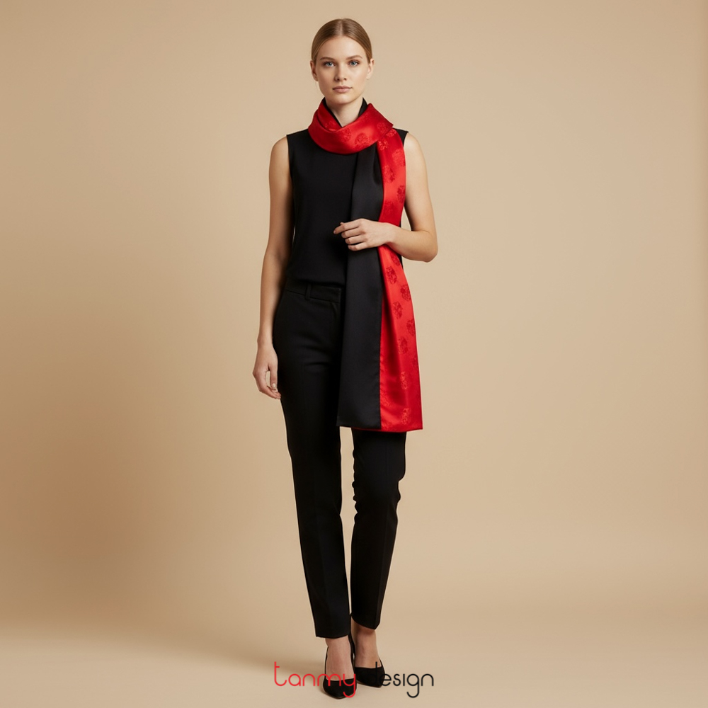 Khăn 2 mặt lụa, pashmina đỏ đen