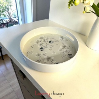 Khay sơn mài chữ nhật đỏ vẽ ao sen 19*30cm