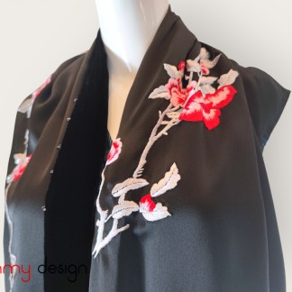 Khay sơn mài chữ nhật gắn trai hoa dây 25*40cm