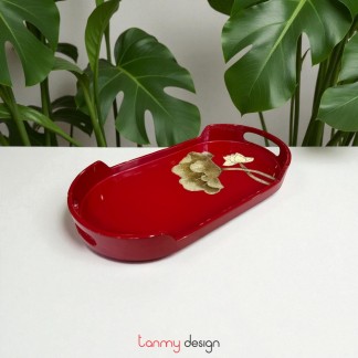 Khay sơn mài chữ nhật vẽ hoa cúc 19x30 cm