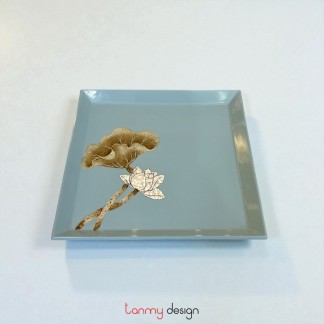 Khay sơn mài vuông màu kem có chân vẽ sen 28cm