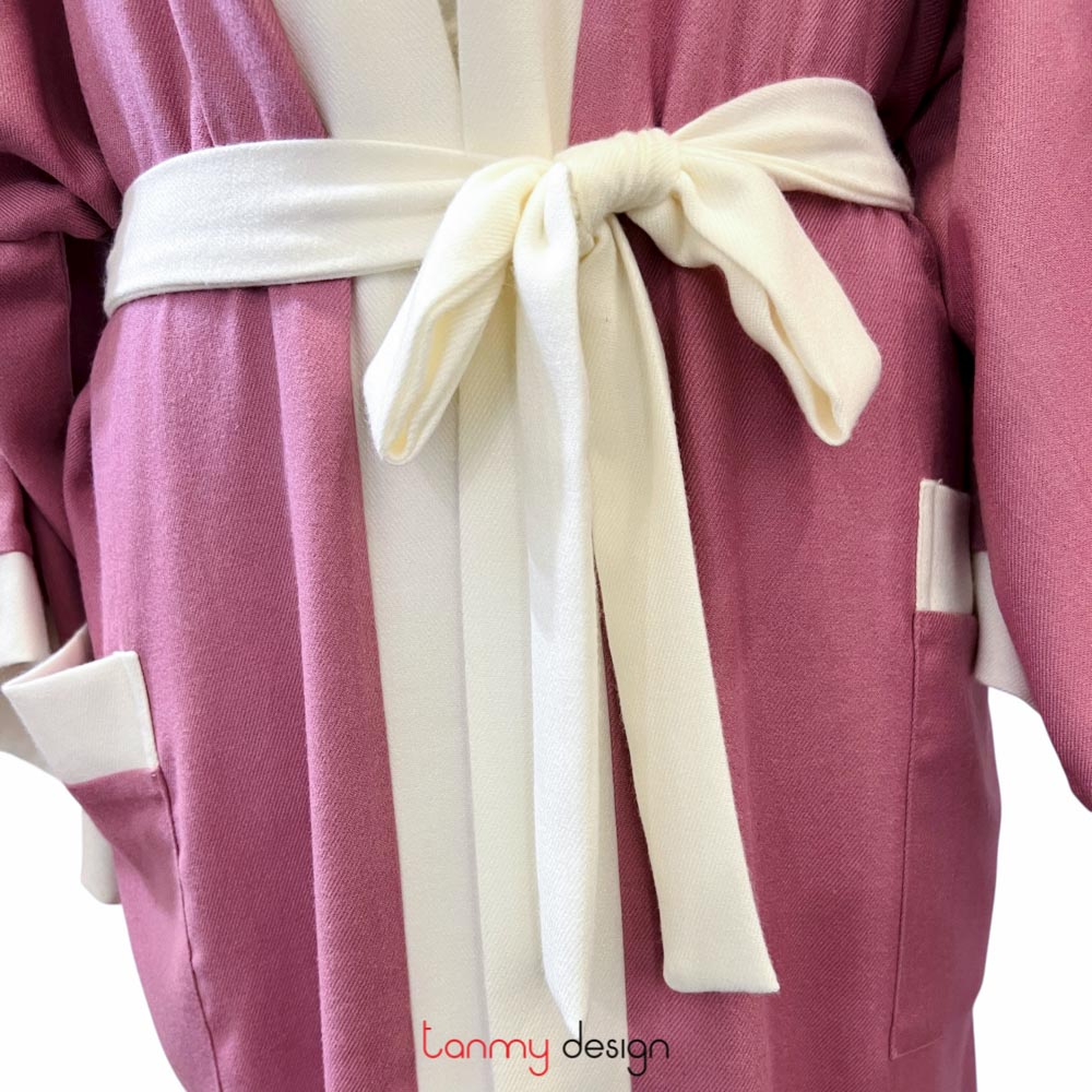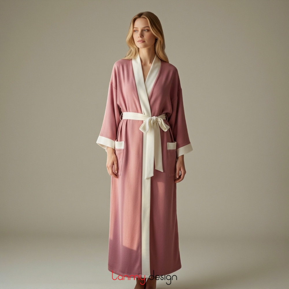 Kimono pasmina nữ hồng vỏ đỗ trắng