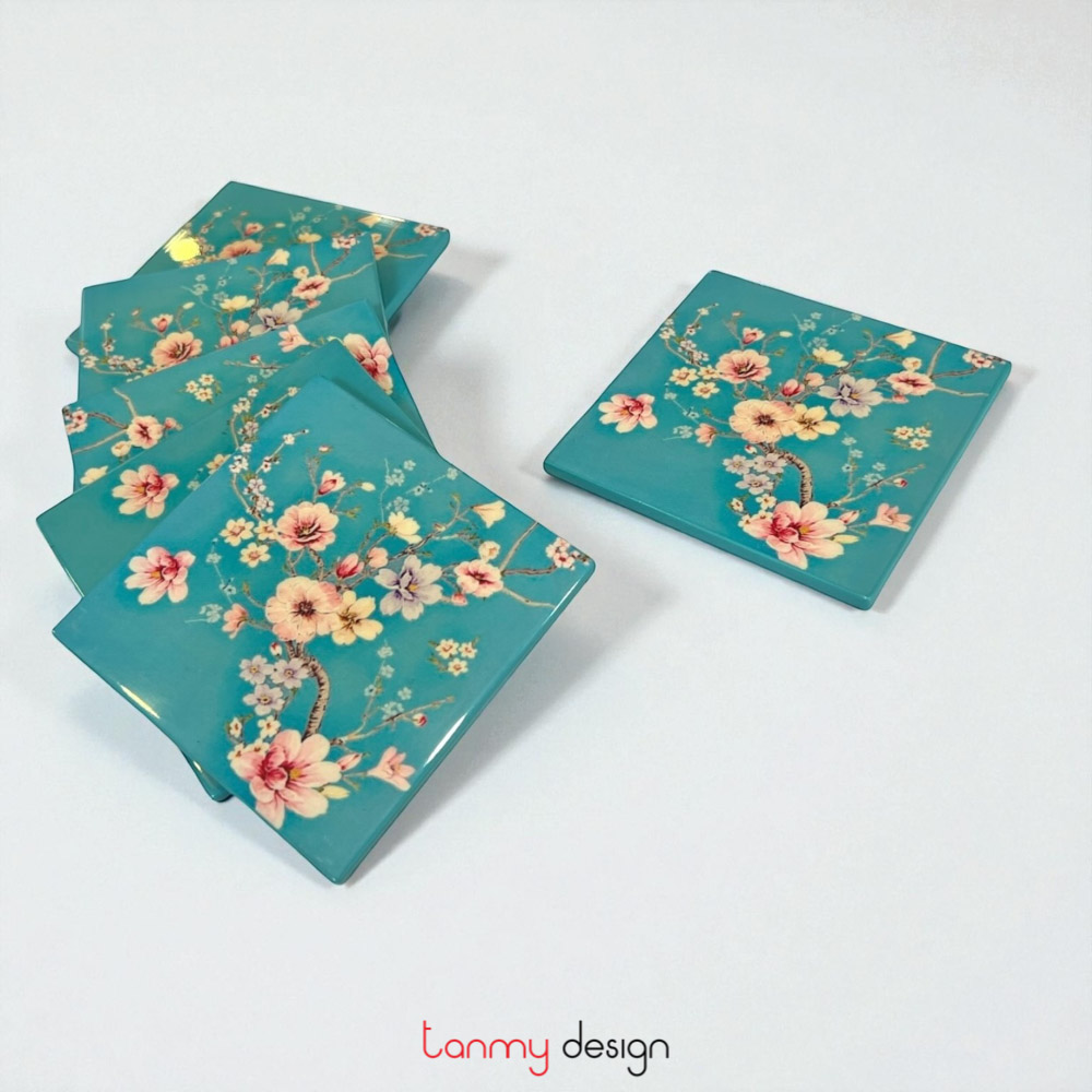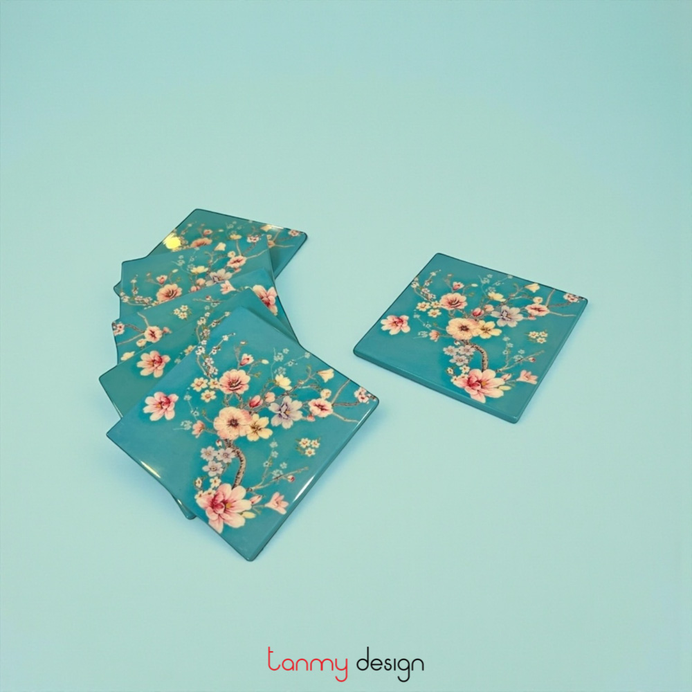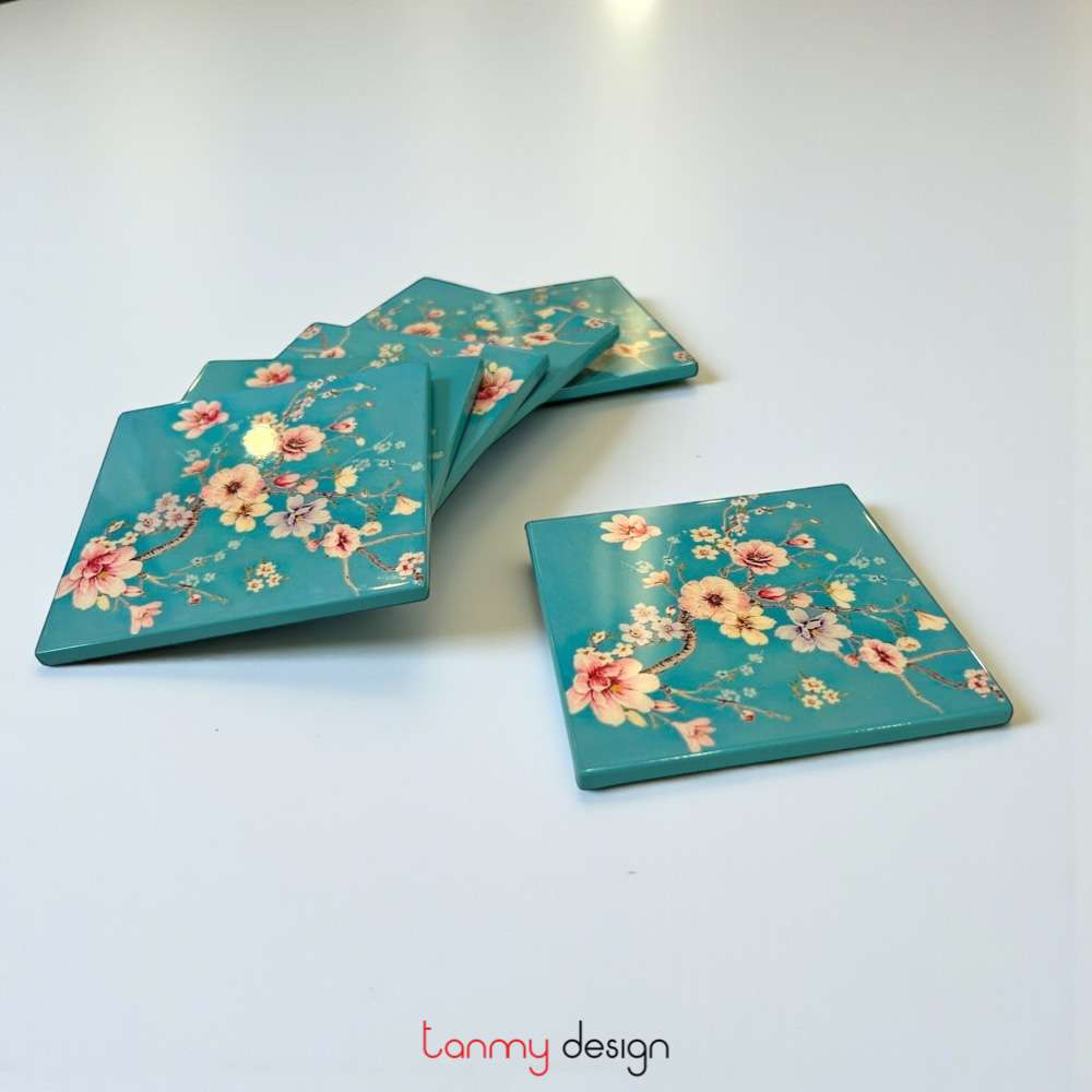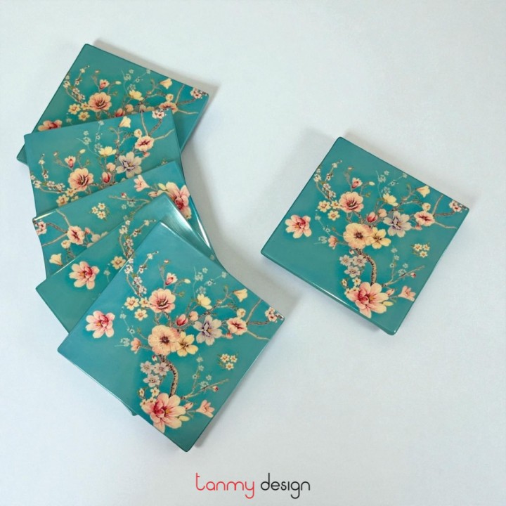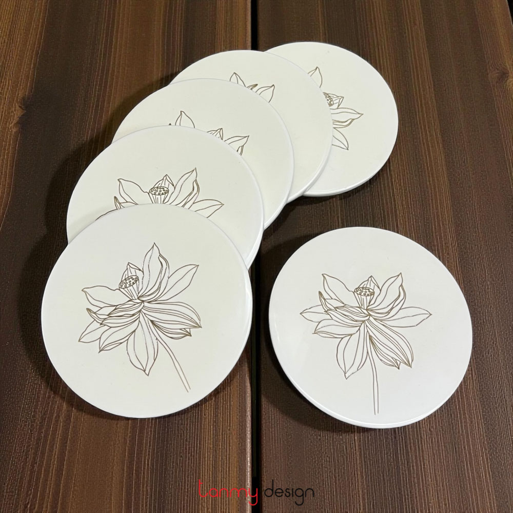 Bộ 6 lót cốc sơn mài thủ công khắc hoa ( các mẫu )