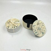 Hộp sơn mài 6 lót ly tròn vẽ hoa kèm hộp ( các mẫu )