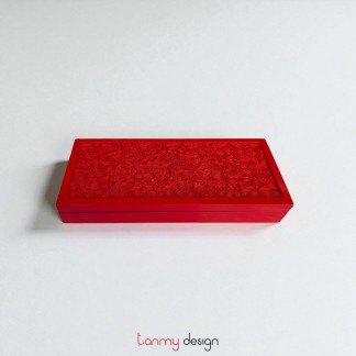 Hộp sơn mài 6 lót ly vuông đỏ vẽ hoa kèm hộp