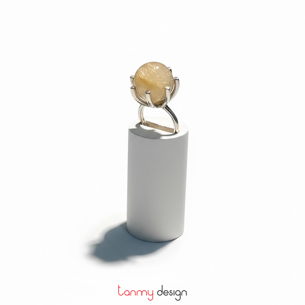 BIG YELLOW RU.QUARTZ bạc mạ rhodium, thạch anh tóc trắng