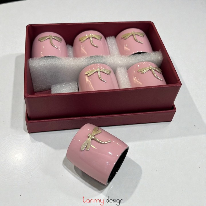 Bộ nút khăn ăn 6 chiếc sừng sơn mài gắn chuồn chuồn ( các màu )