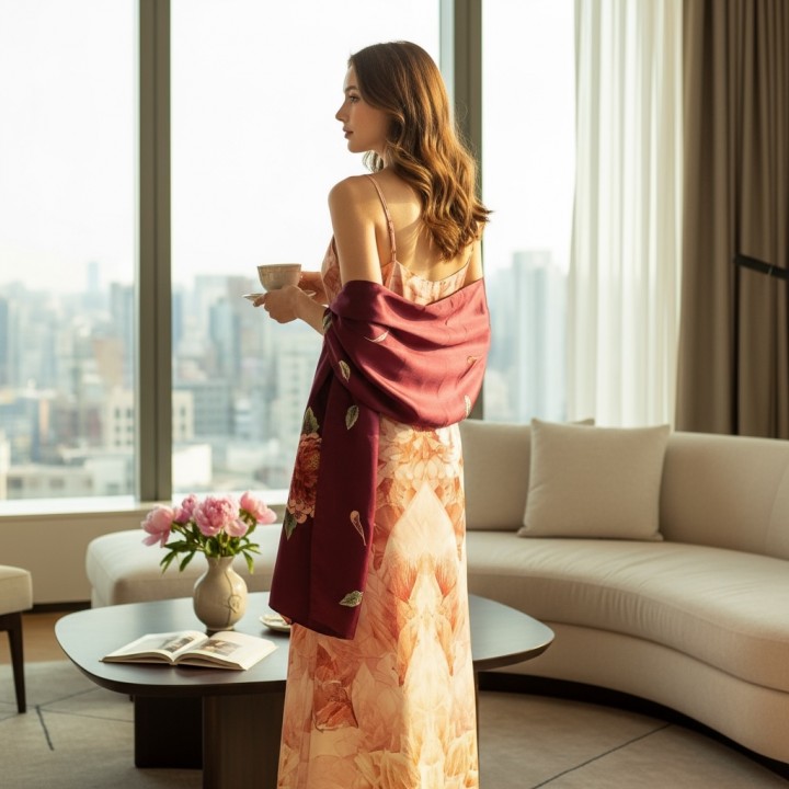 Váy lụa hai dây mẫu họa tiết Hoa thược dược