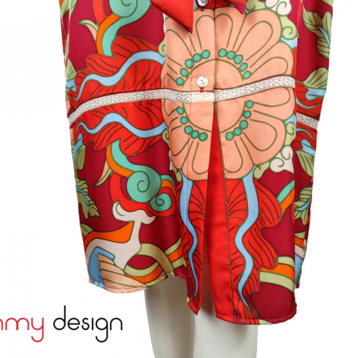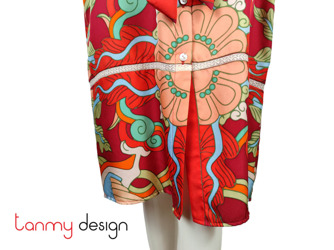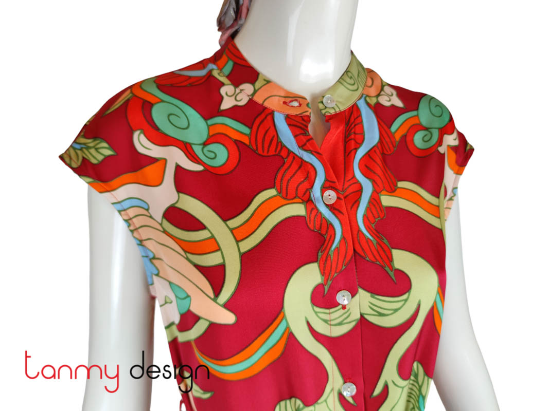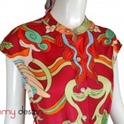 Kiểu dáng: sơ mi không cổ, dáng vừa vặn thoải mái, dễ phối với váy, quần