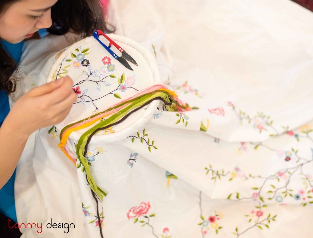 Tân Mỹ Design gìn giữ nghệ thuật thêu tay hai mặt bằng cách kết hợp tay nghề truyền thống qua nhiều thế hệ với thiết kế hiện đại đầy tinh tế.