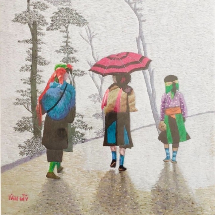 Tranh thêu tay - Cảnh Sapa