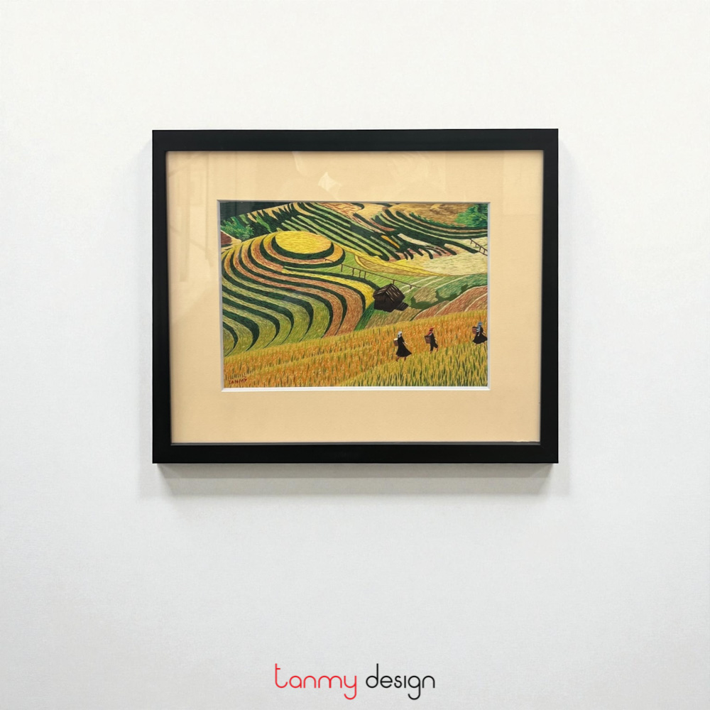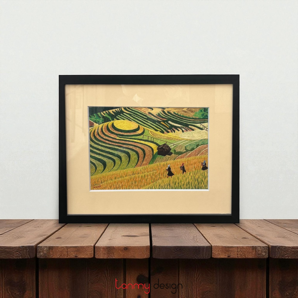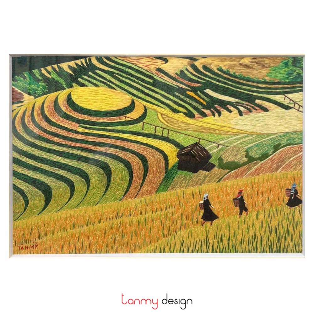 Tranh thêu tay cỡ to- Ruộng bậc thang màu ngang