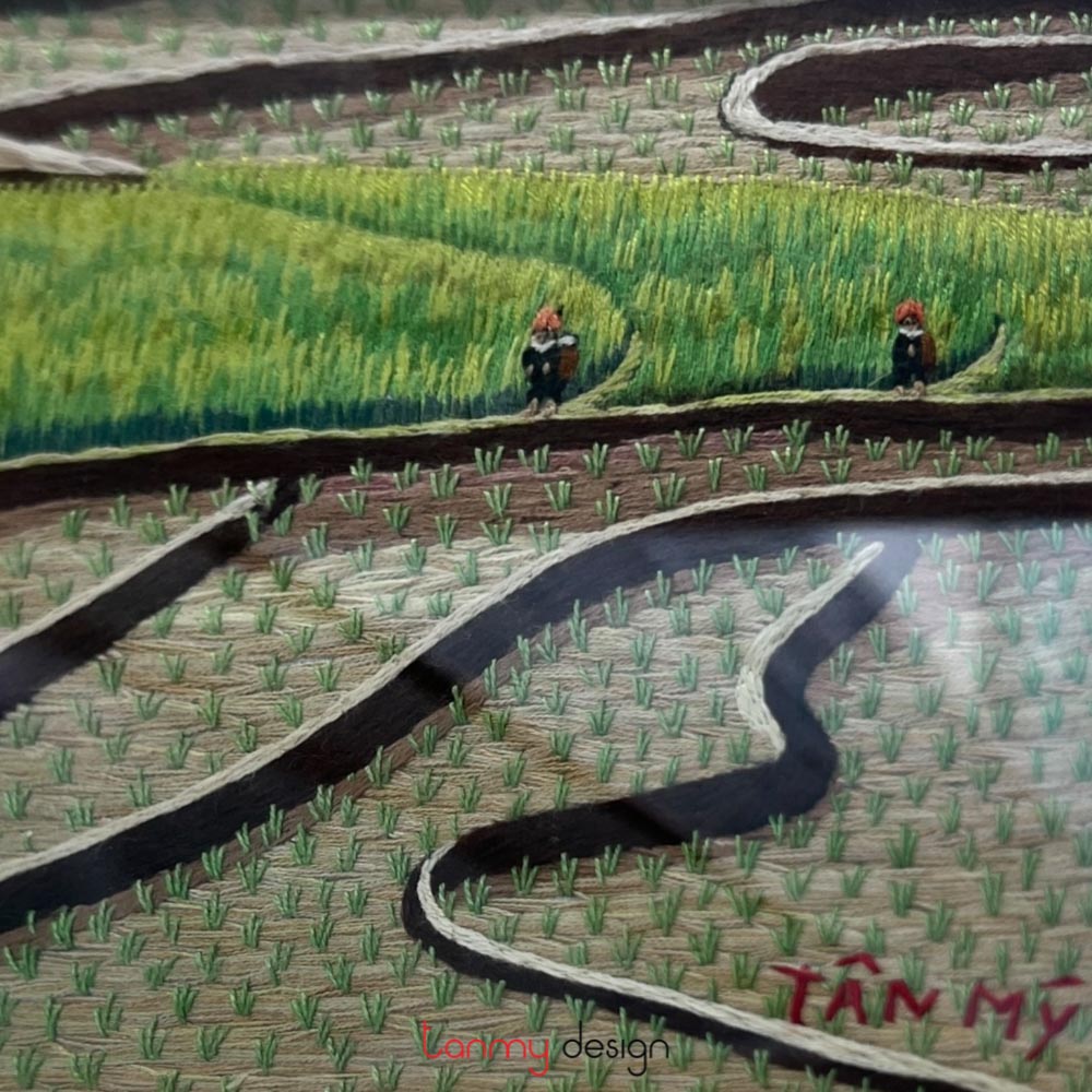 Tranh thêu tay - Ruộng bậc thang lúa xanh - size nhỏ
