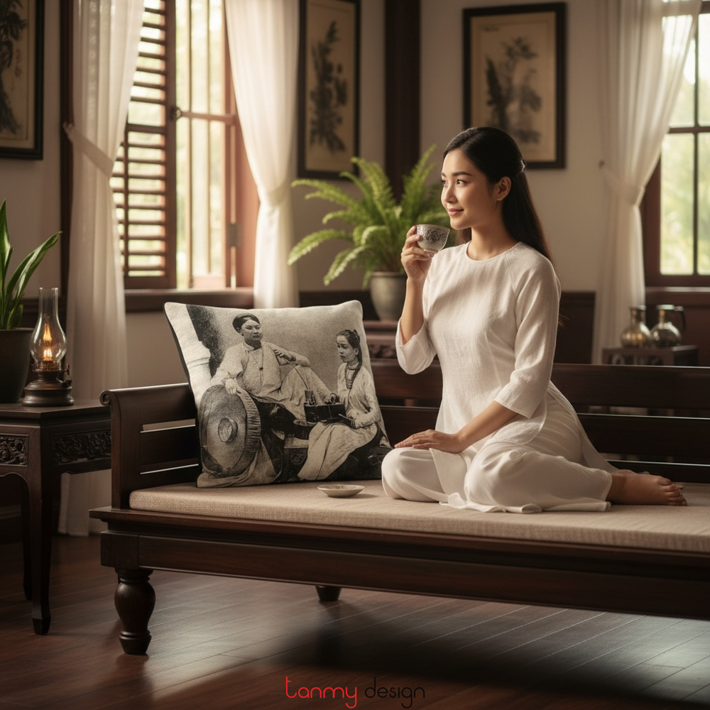 Vỏ tựa lưng họa tiết phụ nữ hút thuốc