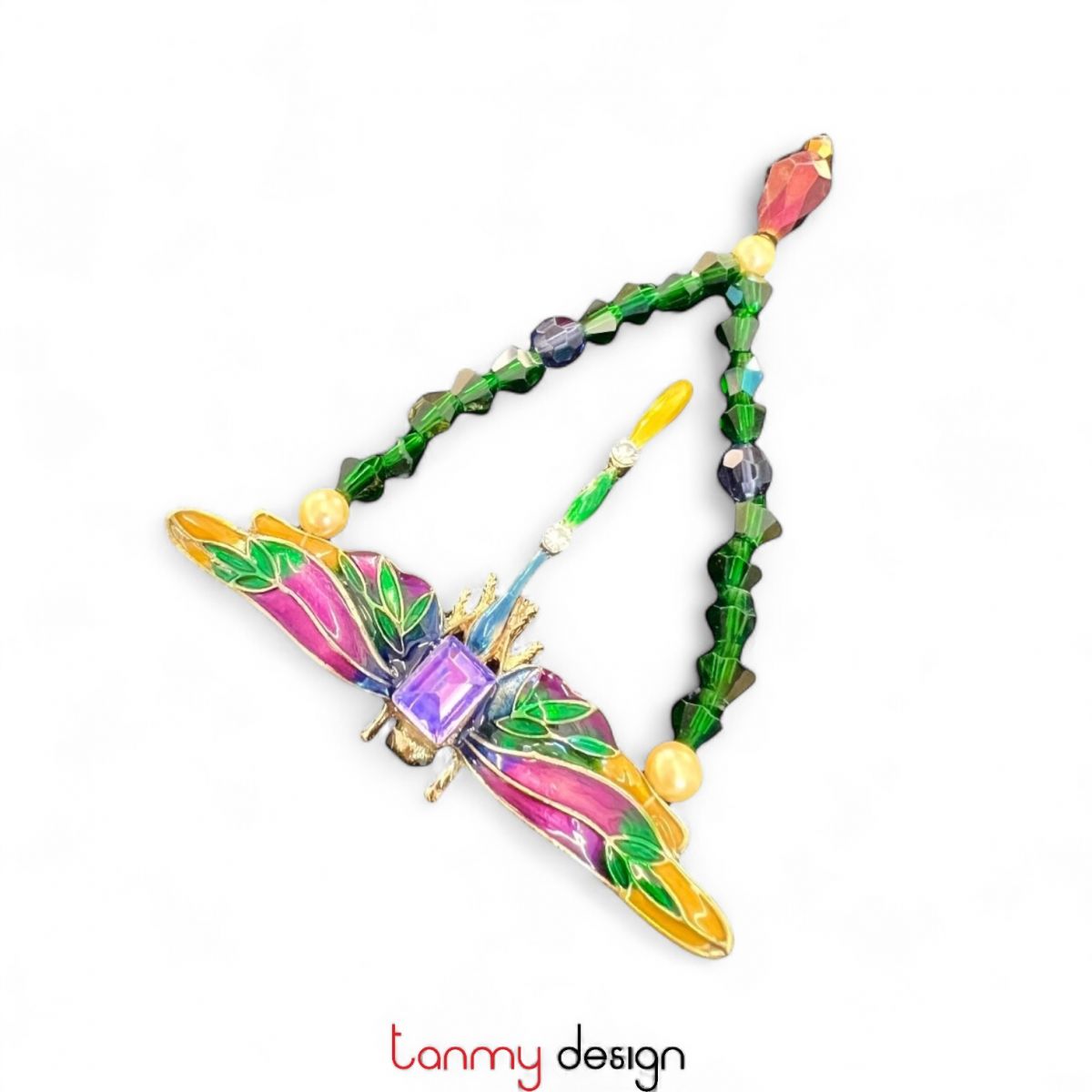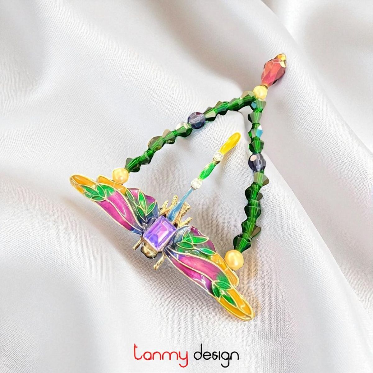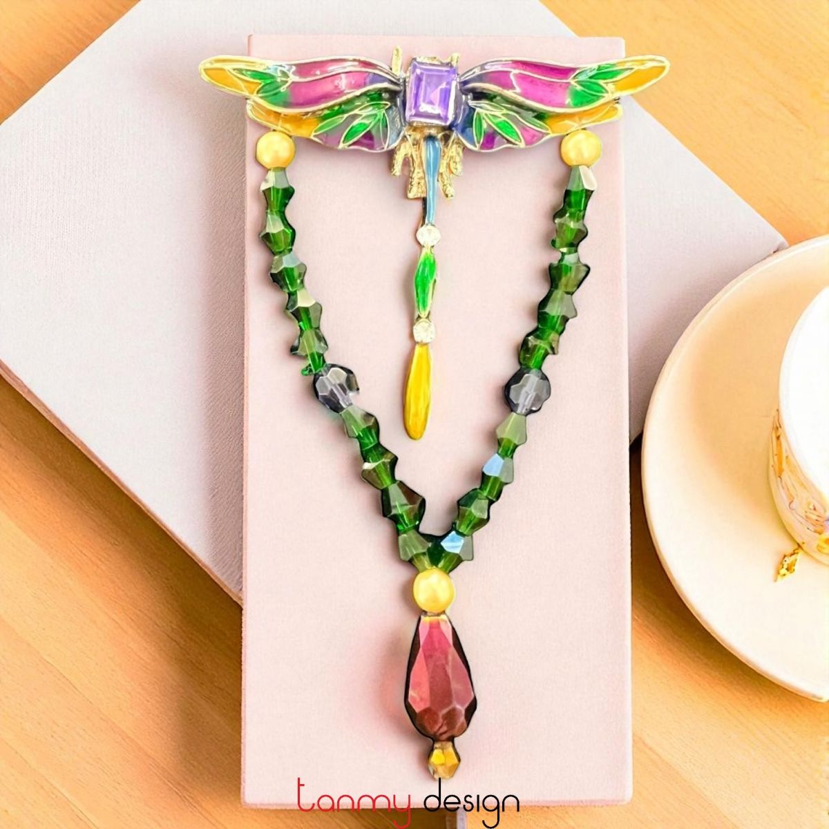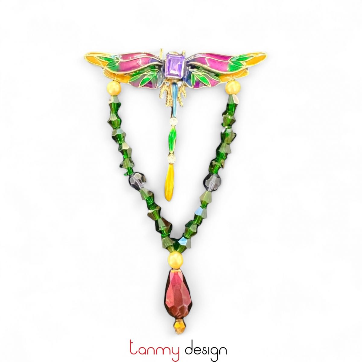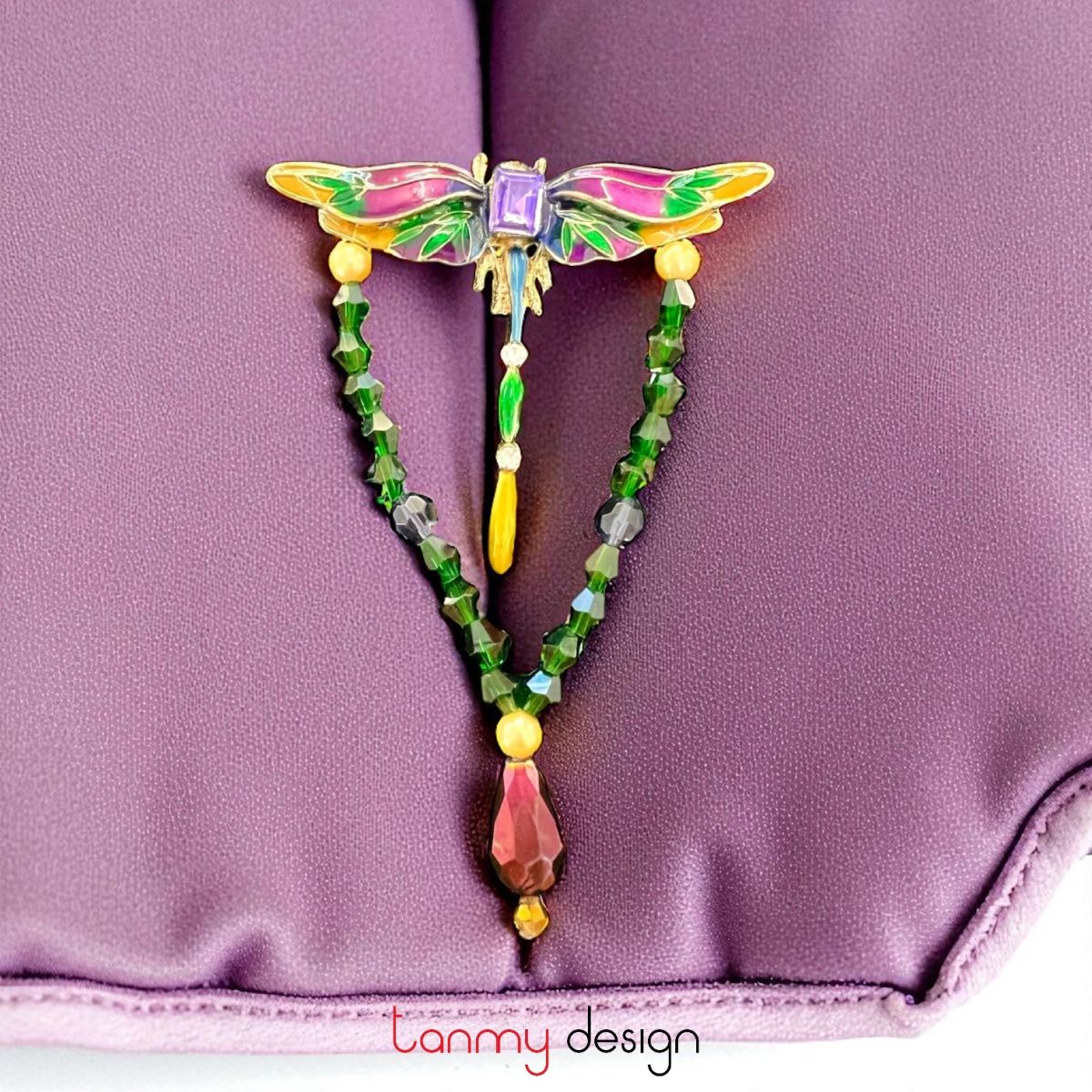 Cài áo hình chuồn chuồn tím, pha lê xanh lá