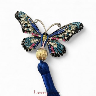 Cài áo kim loại hình con ngựa, tua rua đen