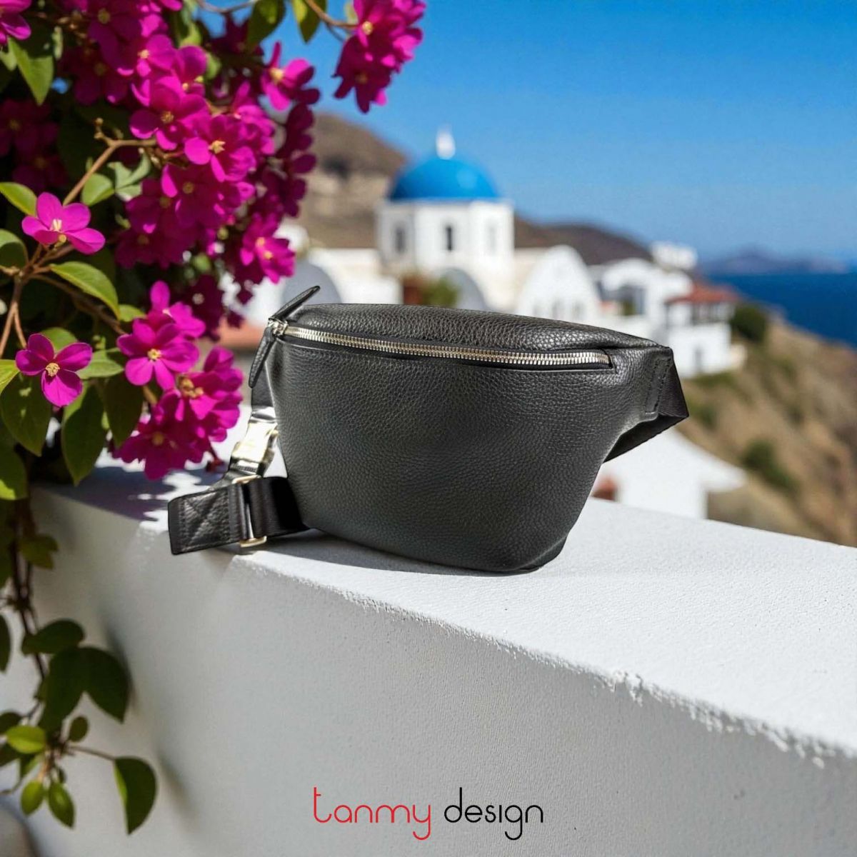 Túi đen dây đeo vải phối da