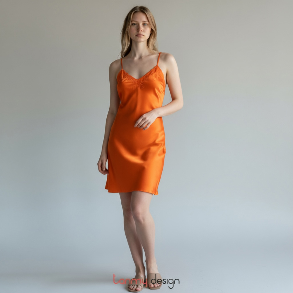 Váy ngủ lụa satin thêu tay Tân Mỹ Design mang lại cảm giác êm ái cho giấc ngủ của bạn mỗi ngày. Tân Mỹ - chính tên thương hiệu của chúng tôi đã nói lên tất cả, "vẻ đẹp mới". Không chỉ mang đến cảm giác cho một sự tươi mới, thời trang Tân Mỹ sẽ giúp bạn tìm thấy được vẻ đẹp bên ngoài và tâm hồn của chính bạn. Hãy dành cho 1/3 cuộc đời - những giấc ngủ êm ái, mềm dịu cùng với váy ngủ lụa thêu tay và áo choàng kimono lụa Hà Đông thêu Tân Mỹ Design mỗi ngày.
