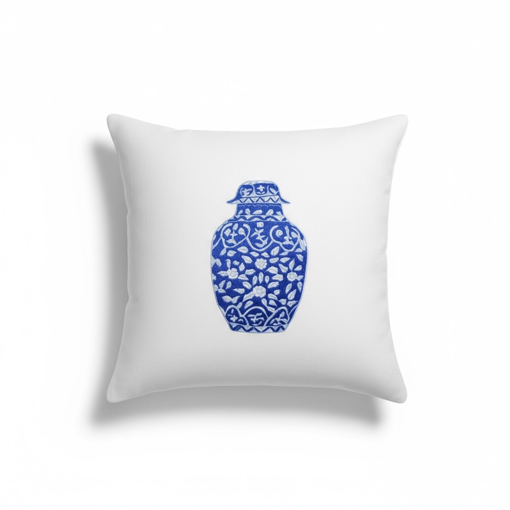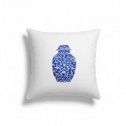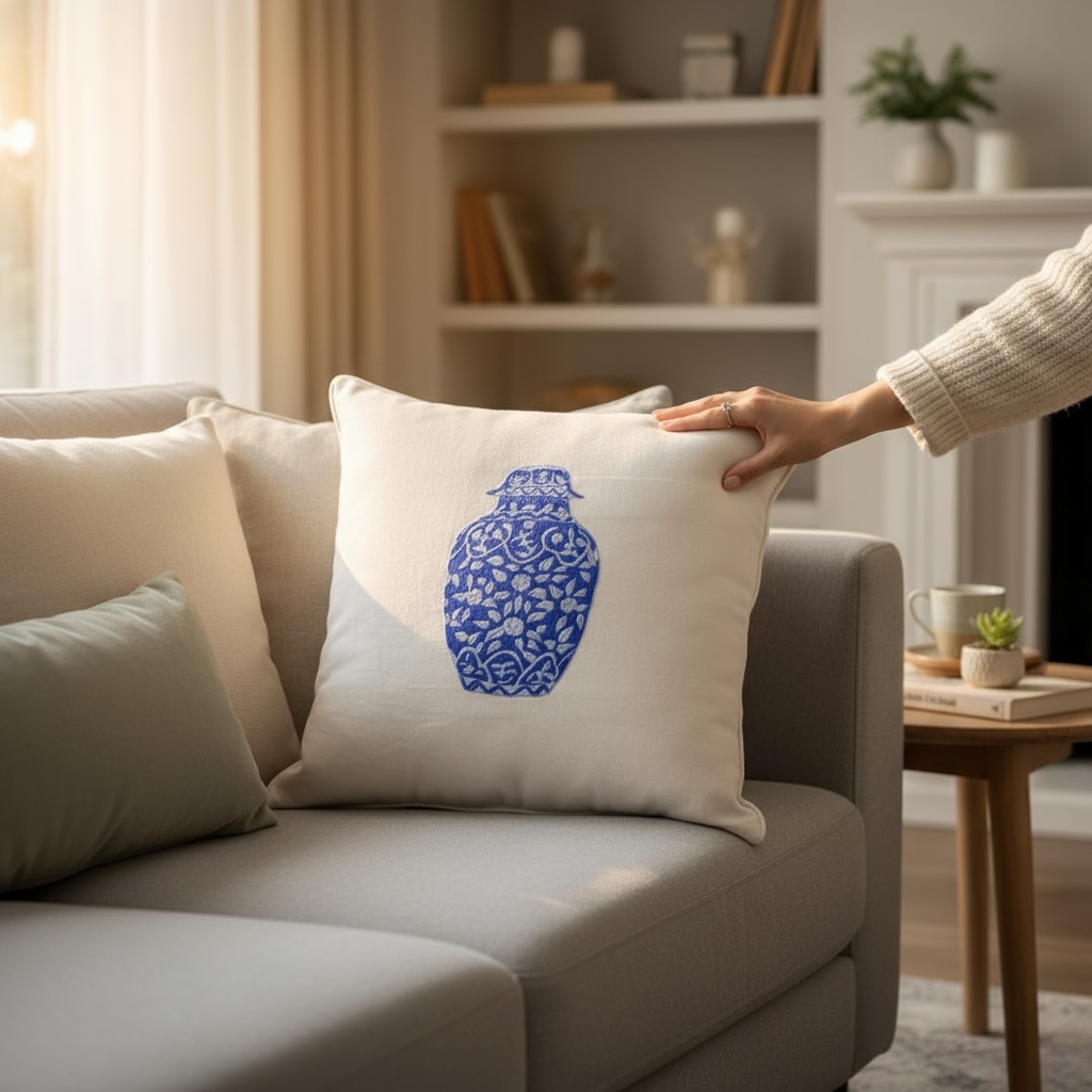 Tựa lưng thêu bình lam hoa lá cổ có mũ