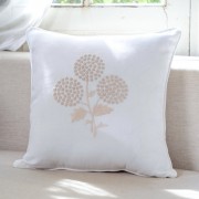 Tựa lưng thêu tay thương hiệu Tân Mỹ trên nền vải linen mang lại cảm giác sang trọng với chất liệu thiên nhiên, không gây kích ứng da.